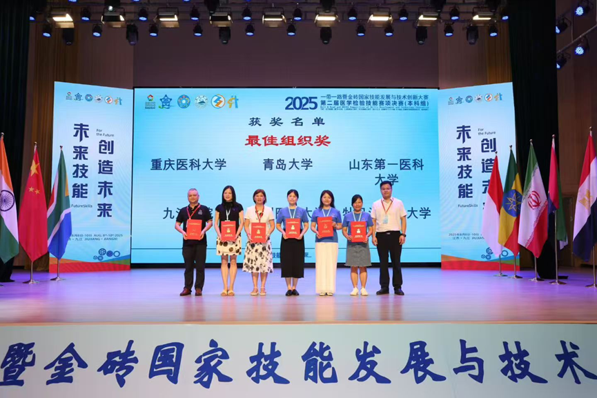 2025年8月8日至10日,“一带一路”暨金砖国家技能发展与技术创新大赛——第二届医学检验技术赛项(本科学生组)暨首届医学检验技术创新赛项决赛(本科教师组)在九江学院成功举办。经过激烈角逐,青岛大学徐文华教授带领青岛医学院医学检验技术专业2022级本科生霍艳芳、贺雨菡勇夺一等奖,青岛大学荣获“最佳组织奖”,徐文华教授等获评“优秀指导教师奖”。